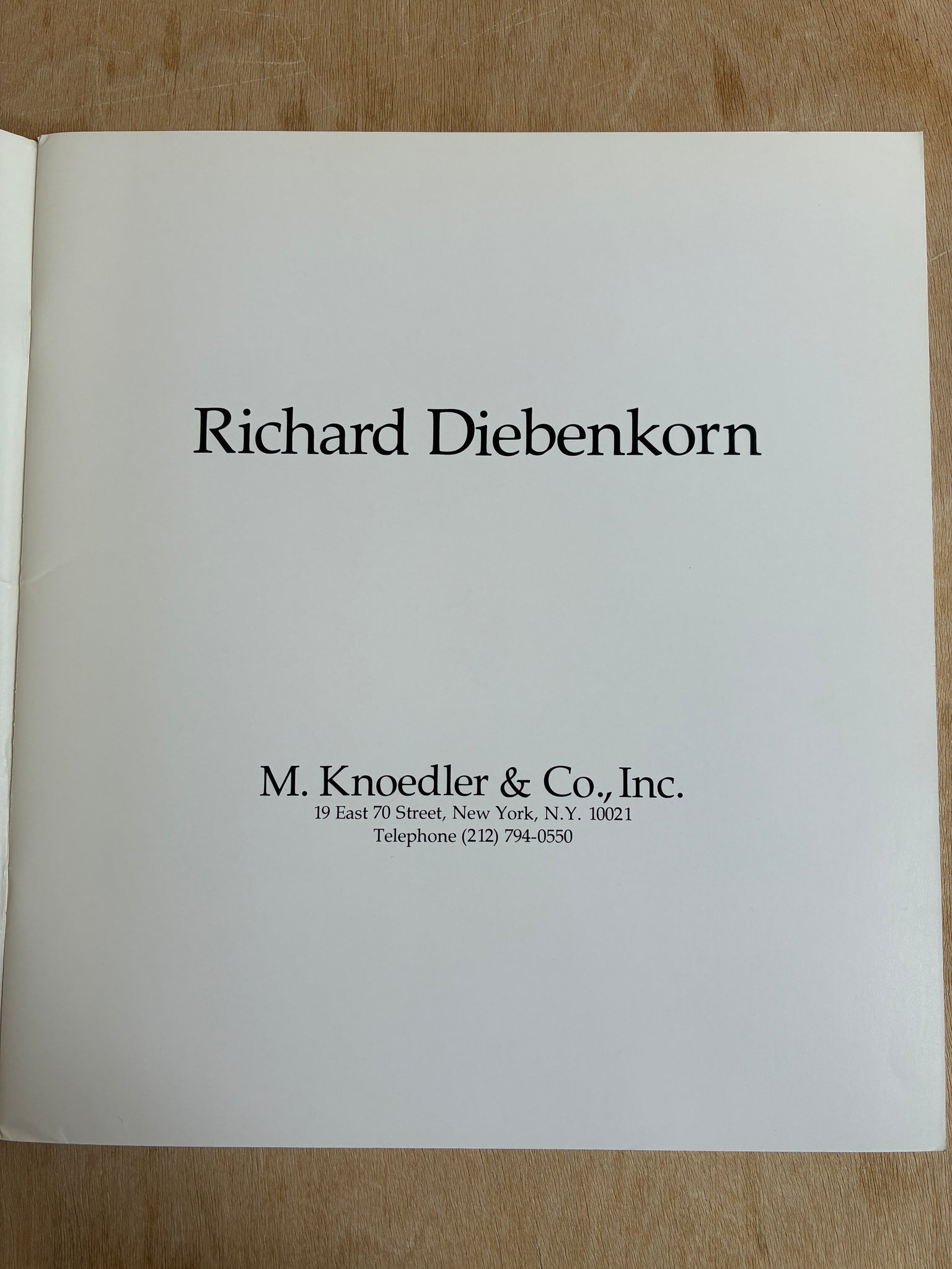 An exhibition catalog published on the occasion of a show of Richard Diebenkorn's recent paintings from 1979-1980 at M. Knoedler & Co., New York, November 7 - December 2, 1980.