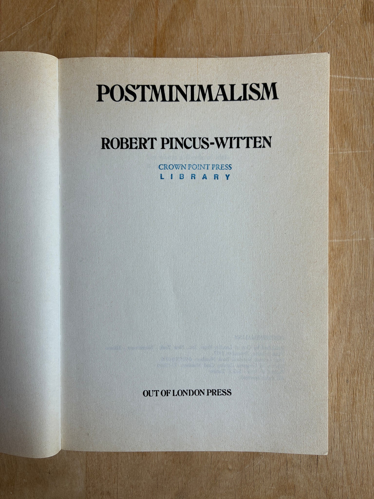 by Robert Pincus-Witten. Published by Out of London Press, 1977.